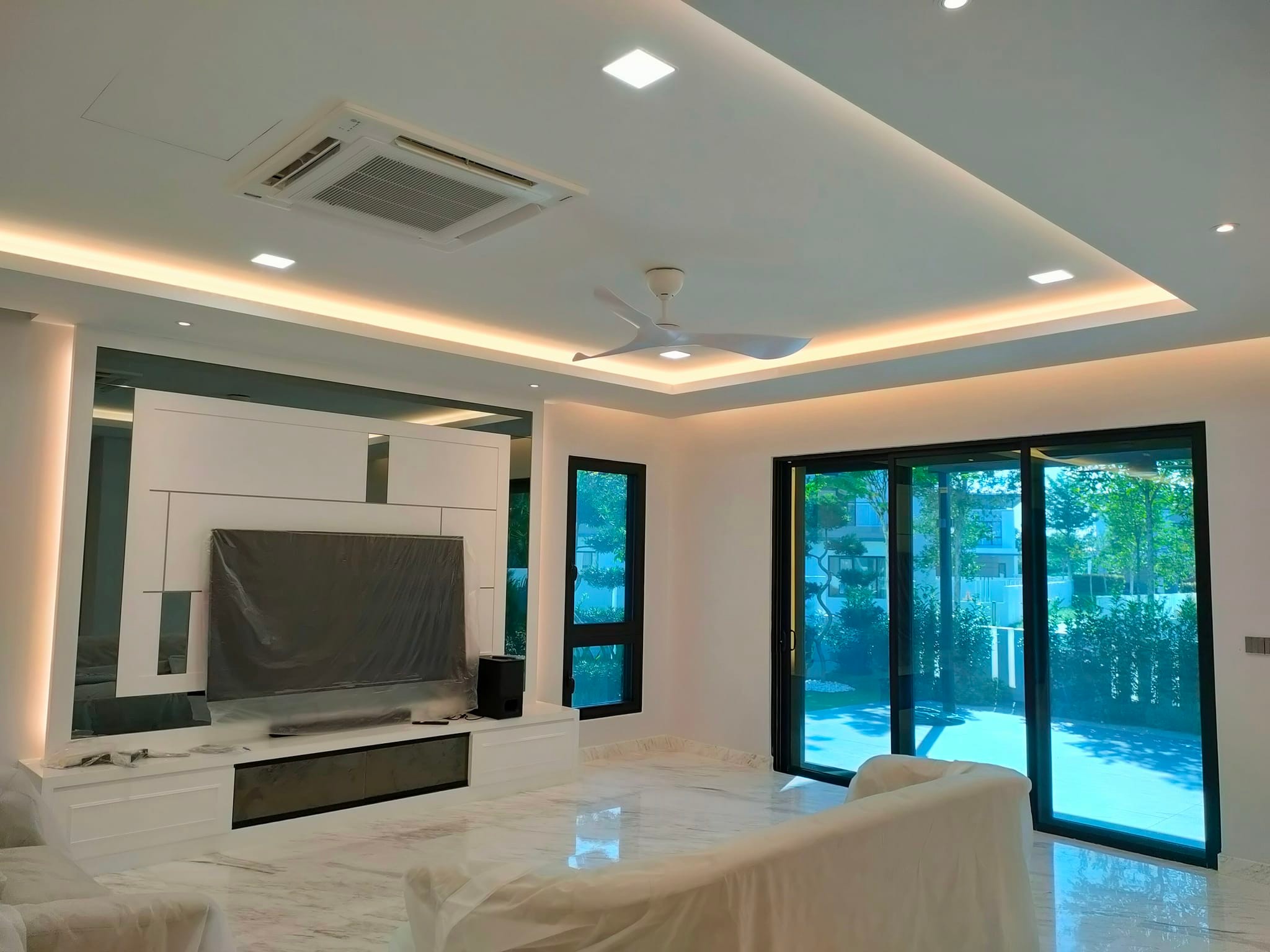 CustomerI hired Vjing Plaster for plaster ceiling installation, and I’m impressed! They offered a free site inspection, gave a clear quote, and delivered high-quality work. The custom design and LED lights look fantastic. Highly recommend!